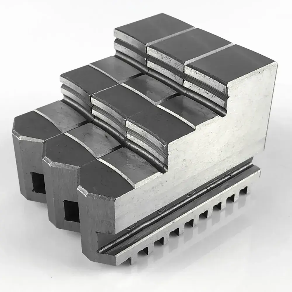 Кулачки для токарных 3-х кулачковых патронов 160 мм стандарта К11 обратные, цельные. Рабочая поверхность, направляющие зубья подвергаются цементации и термообработке, после чего шлифуются. Поставляются комплектом из 3-х штук.