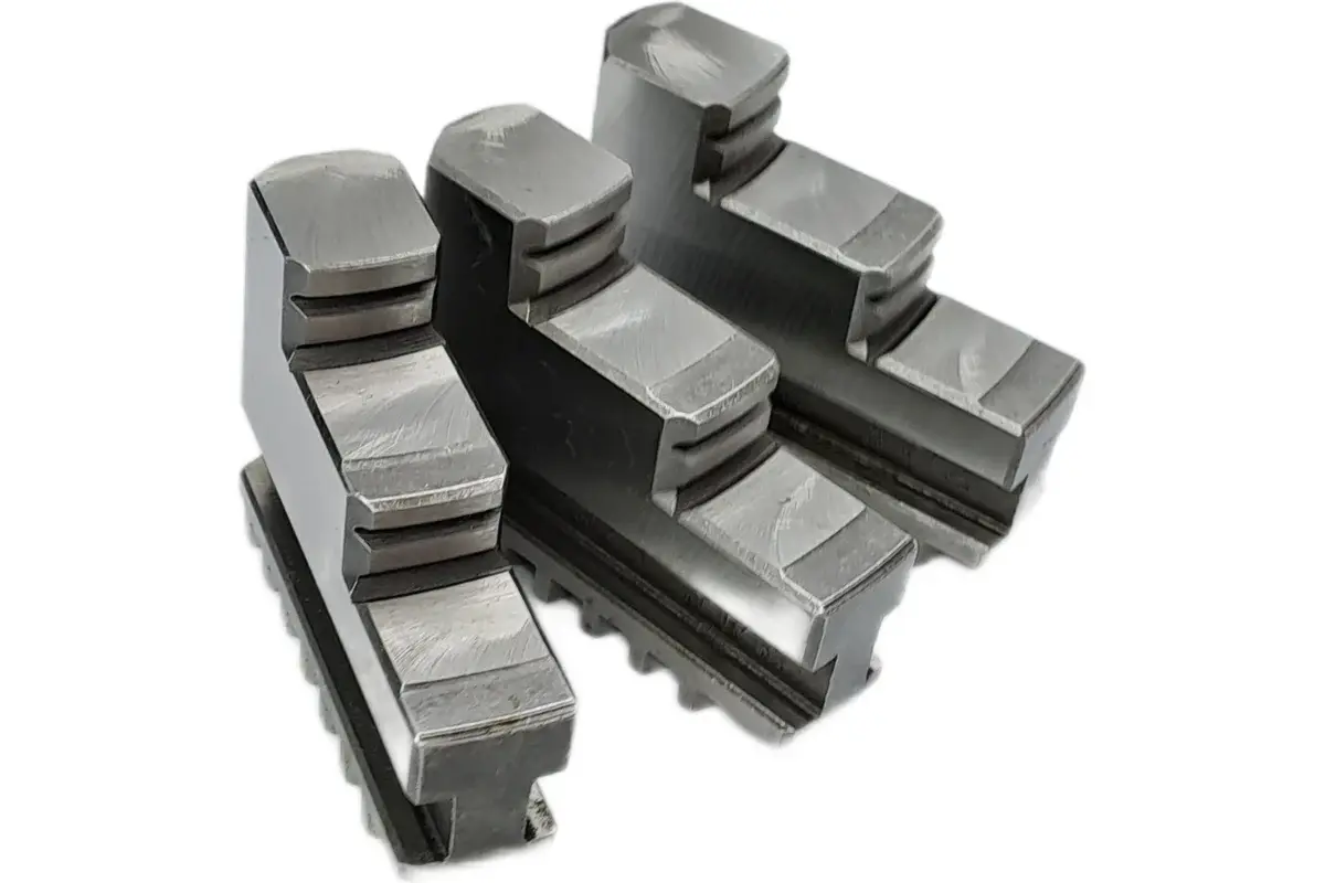 Кулачки прямые для токарных 3-х кулачковых патронов диаметром 320 мм – служат для зажима заготовки с внешней стороны. Изготовляются из стали 40Х. Конструктивно выполнены как цельная деталь. Зажимающая поверхность и зубья кулачков проходят термообработку и после этого шлифуются. Поставляются комплектом (3 штуки).