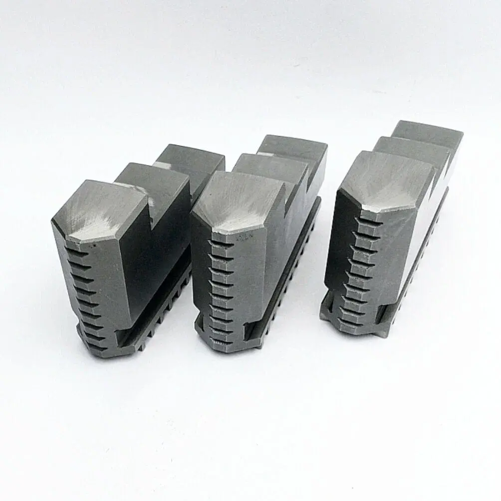 Кулачки прямые для токарных 3-х кулачковых патронов диаметром 400 мм – служат для зажима заготовки с внешней стороны. Изготовляются из стали 40Х. Конструктивно выполнены как цельная деталь. Зажимающая поверхность и зубья кулачков проходят термообработку и после этого шлифуются. Поставляются комплектом (3 штуки).