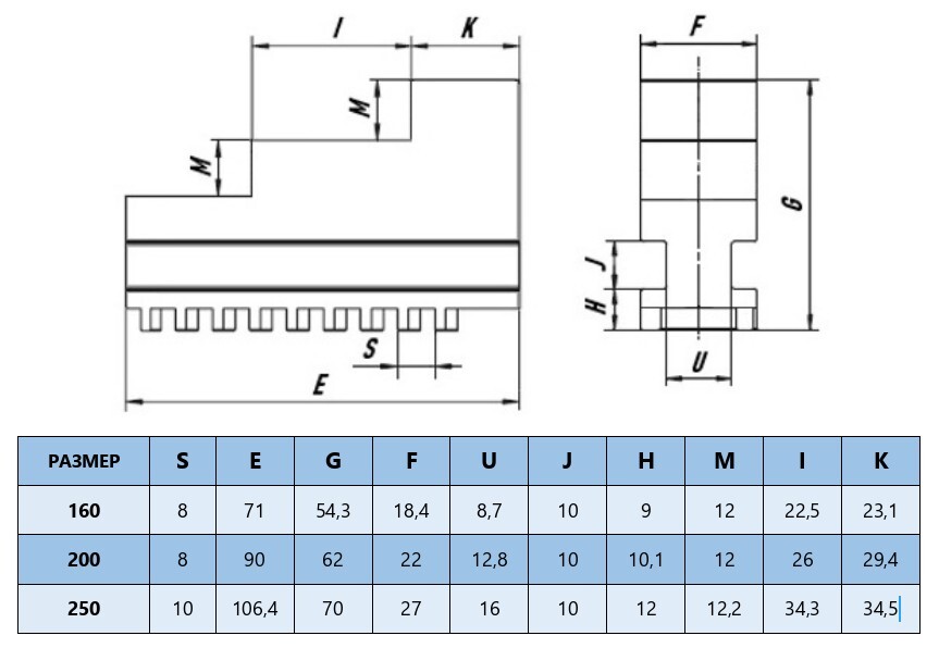Китайский завод Yantai Universal Machine Tool Equipment, Ltd. использует в своих изделиях стандарт патронов К11. Следует учесть, что данные кулачки могут не подойти для патронов других стандартов. Поэтому перед покупкой обязательно проверьте параметры.