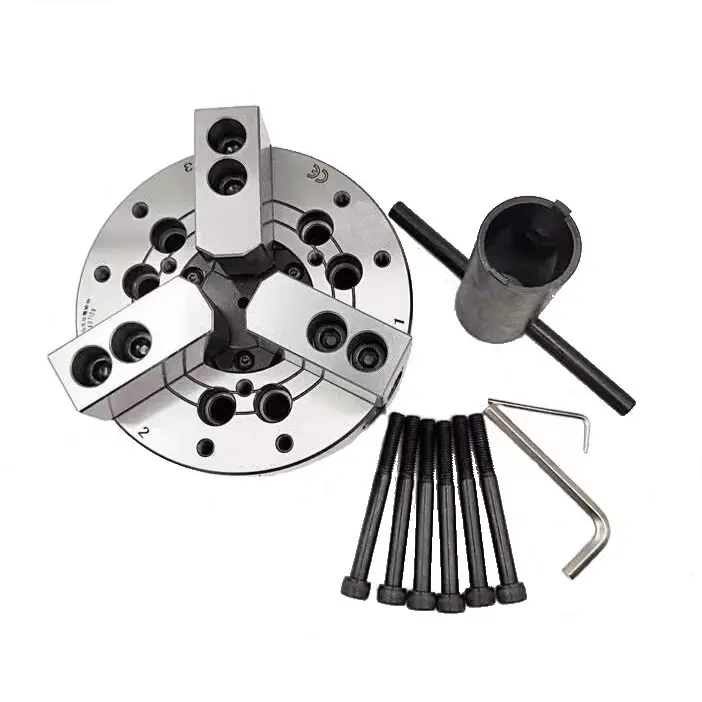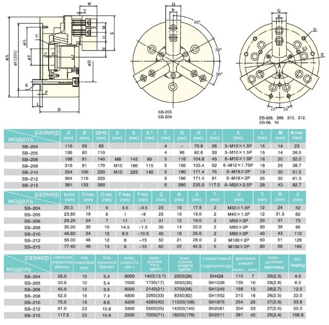 Токарный патрон SB-208 гидравлический предназначен для установки на токарные станки, револьверные и внутришлифовальные. Для смены заготовок на патроне не требуется ключ. Управление зажимом происходит через гидропривод. Настройка на необходимый диаметр зажима заготовки происходит перестановкой накладных кулачков по рифлению основного кулачка.