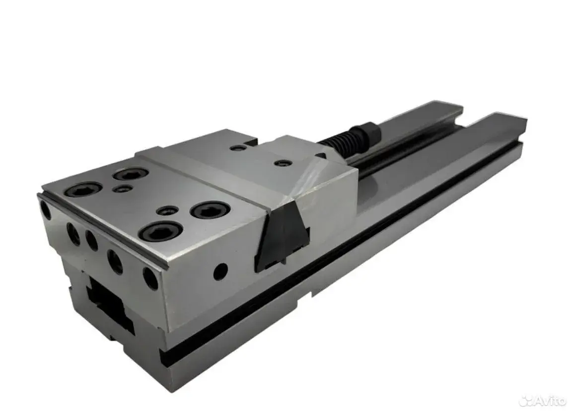 Тиски изготовлены из высококачественной стали. Рабочая поверхность закалена и отшлифована с высокой степенью точности. Твердость рабочих поверхностей достигает HRC58-62. Тиски применяются для точной обработки деталей на фрезерных, шлифовальных и других станках. Обладают высокой силой зажима, что позволяет надежно закрепить заготовку.